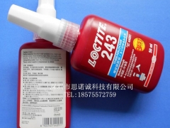 Loctite243螺纹锁固胶,美国汉高乐泰243适合于锁固和密封需要正常拆卸的螺纹紧固,使用标准手工工具可正常拆卸、该产品在隔绝氧气的金属封面间固化,可以防止由于震动或冲击而引起的松动或泄漏.触变特性降低了液态乐泰243在施胶到基材上后,未固前的流淌性、乐泰243固化性能很好,不仅在作用于活金属(诸如黄铜、紫铜),同时作用于惰性基材,诸如不锈钢和镀层表面、此产品耐高温抗油脂。它能容许各种轻微表面染,诸如切割、润滑、防腐蚀和保护液体内所含的油污的。 典型用途:中强度,容油性好; 颜色:蓝色; 粘度(mPa.s):1300/3000; 耐温:-54℃至150℃; 包装规格:50ml_250ml瓶装; 乐泰243厌氧型螺纹锁固剂:性能优异,耐热、耐压、耐高低温、耐药品、耐冲击、减震、防腐、防雾等性能良好。用途广泛,密封,锁紧、固持、粘接、堵漏等均可使用。